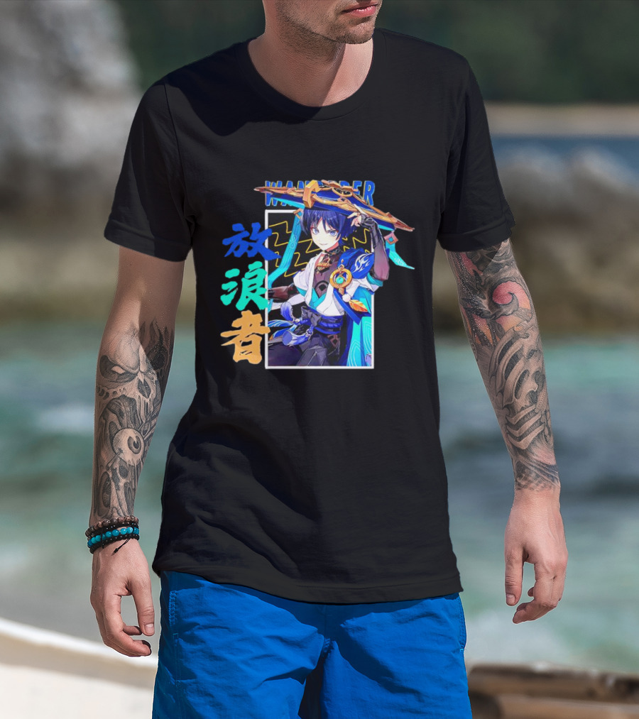 The Wanderer Scaramouche Genshin Impact T-shirt is designed for everyday wear and a consistent fit. Fabric is pre-shrunk ring-spun cotton with durable stitching. See the size chart below for exact measurements.