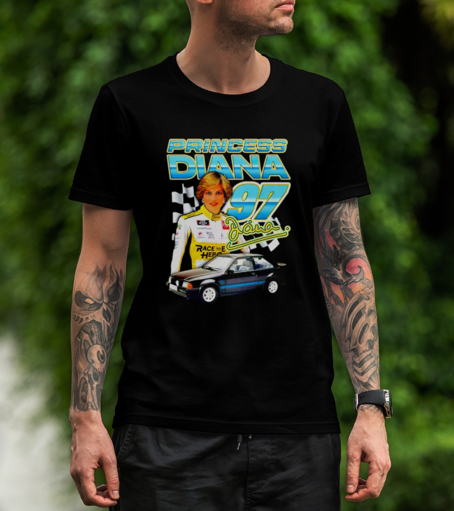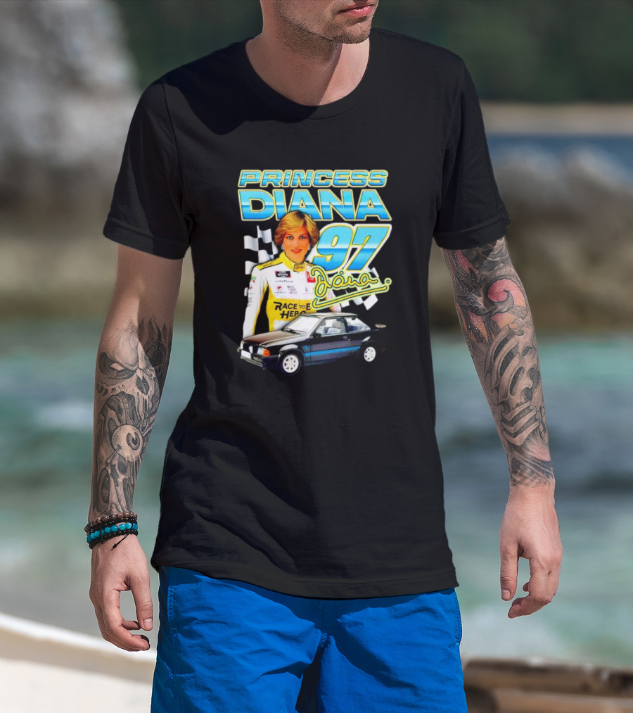 Princess Diana Race To Hero 97 Racing Diana Car Checkered Flags T-Shirt
