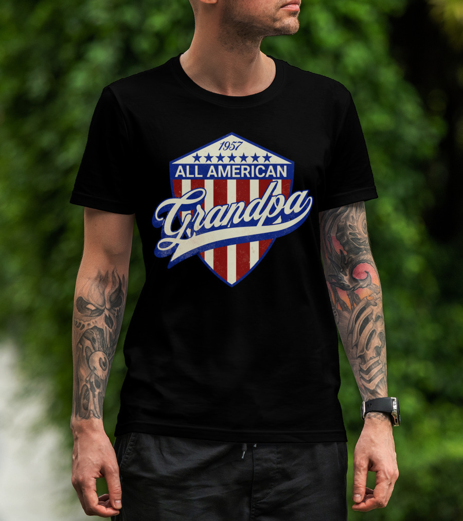The 1957 All American Grandpa T-shirt is designed for everyday wear and a consistent fit. Fabric is pre-shrunk ring-spun cotton with durable stitching. See the size chart below for exact measurements.