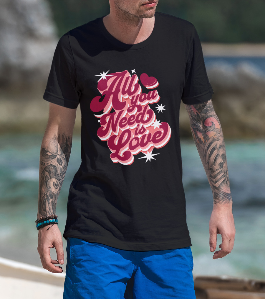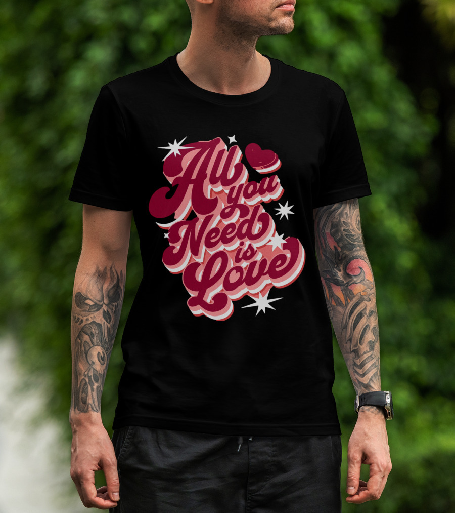 The All You Need is Love Valentine's Day T-shirt is designed for everyday wear and a consistent fit. Fabric is pre-shrunk ring-spun cotton with durable stitching. See the size chart below for exact measurements.