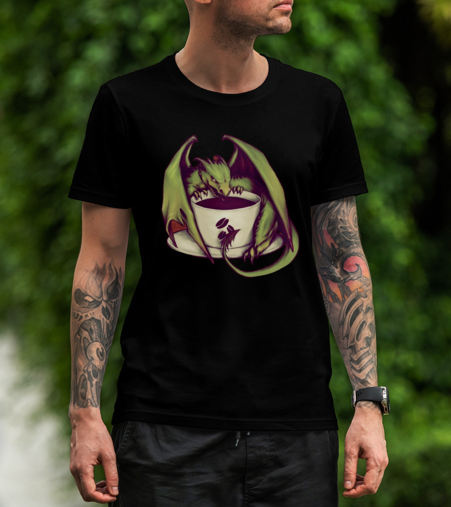 Coffee Dragon With Green Wings And Coffee Cup T-Shirt