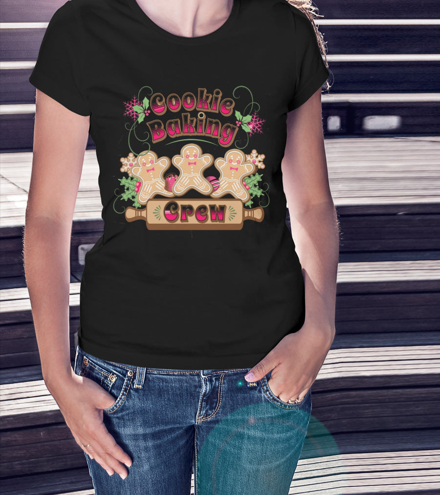Cookie Baking Crew Gingerbread Ginger Festive Holiday Snowflakes T-Shirt