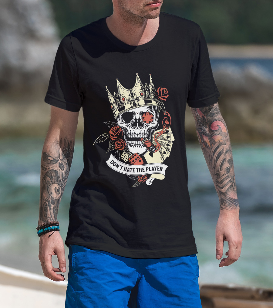 Don't Hate The Player Skull Crown Cards Roses Dice Cigar T-Shirt