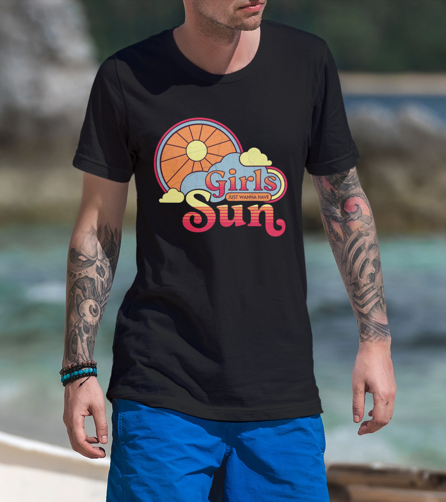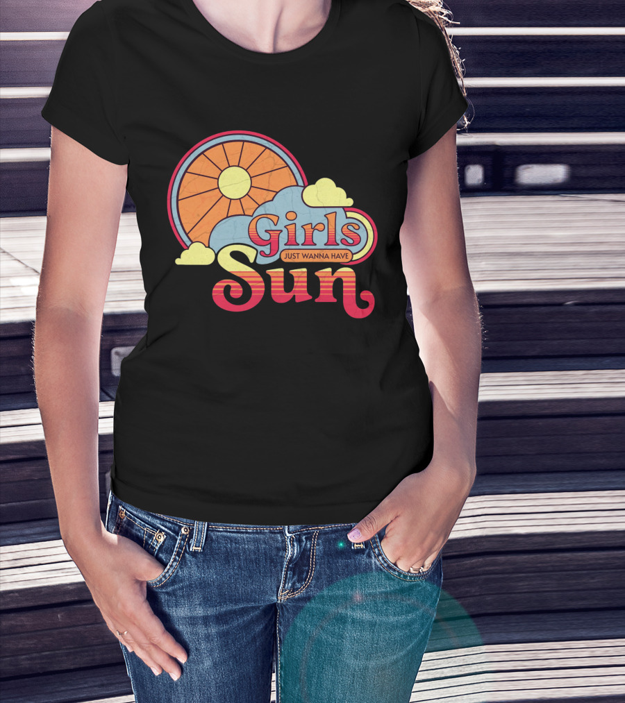 The Girls Just Wanna Have Sun Retro Sunshine and Clouds T-shirt is designed for everyday wear and a consistent fit. Fabric is pre-shrunk ring-spun cotton with durable stitching. See the size chart below for exact measurements.