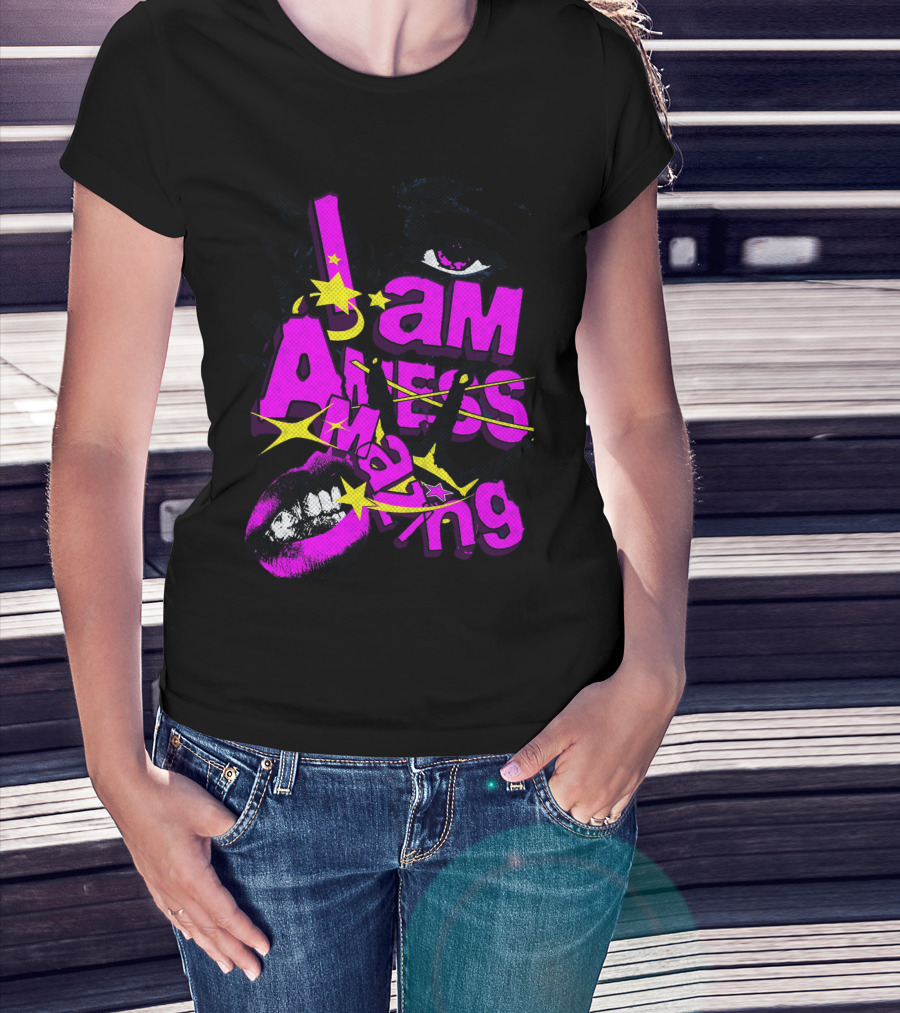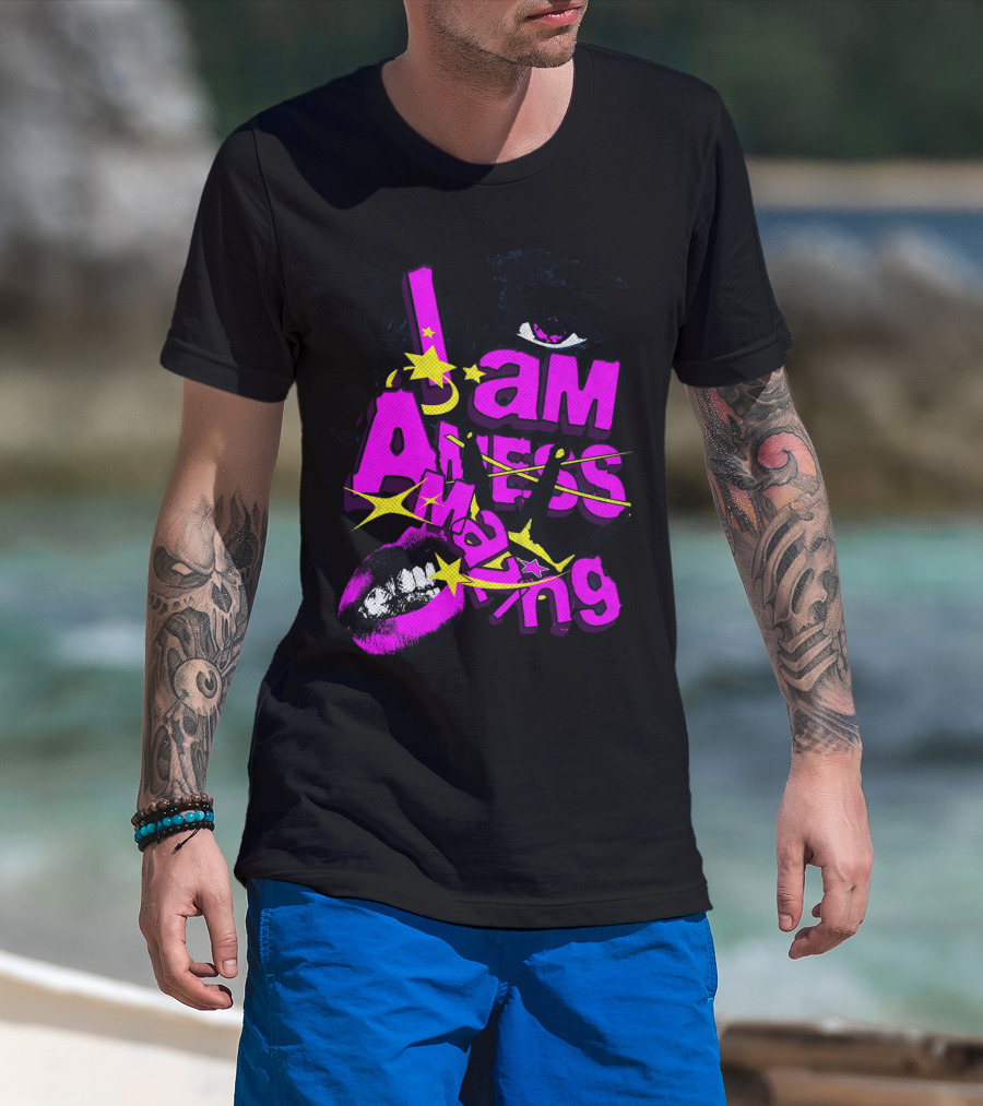 I Am Amazing Bold Eye And Lips Starburst Pink And Yellow T-Shirt