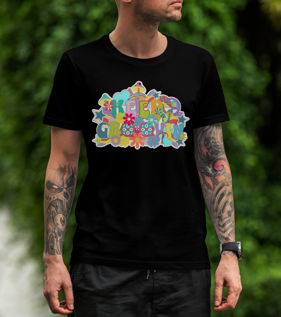KEEP GROOVIN Psychedelic Flowers And Stars Retro Vibes T-Shirt