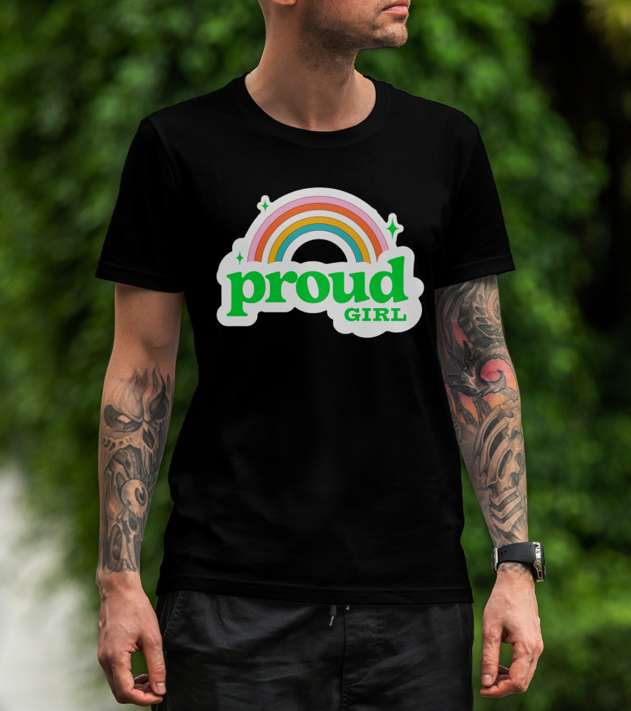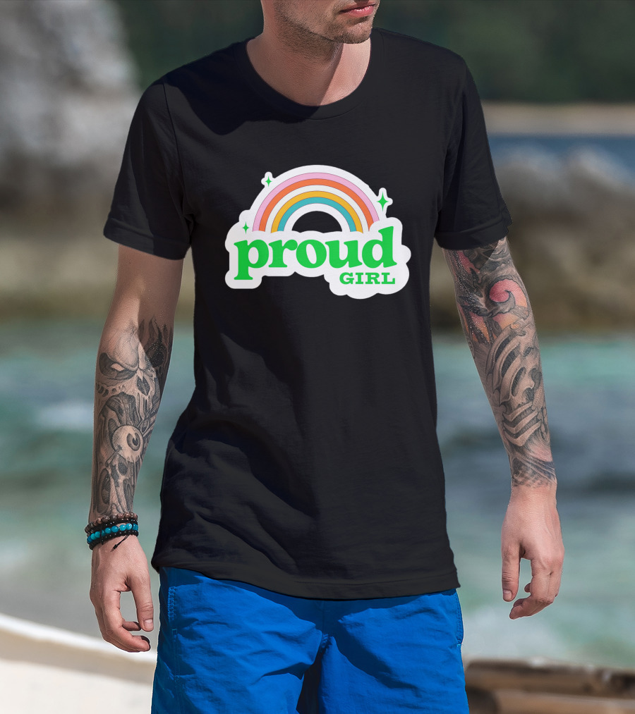 Proud Girl Green Text Rainbow With Sparkles T-Shirt