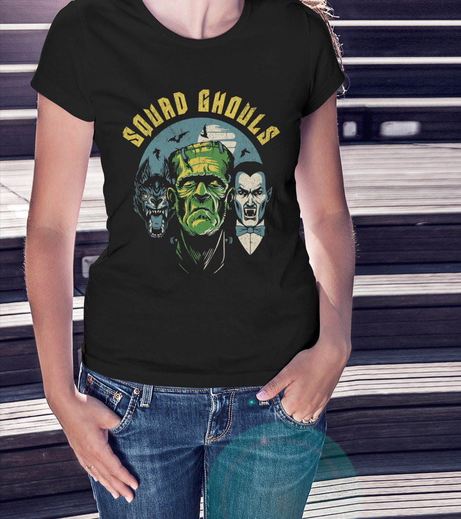 Squad Ghouls Frankenstein Dracula Werewolf Halloween Characters T-Shirt