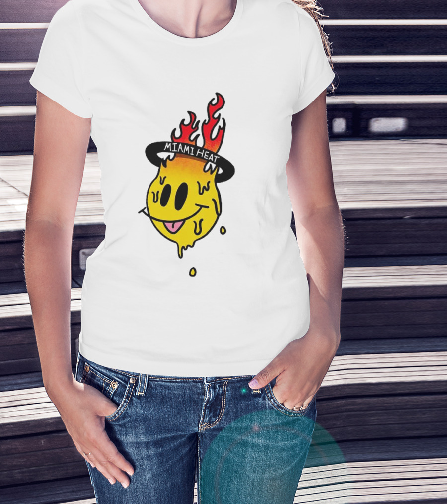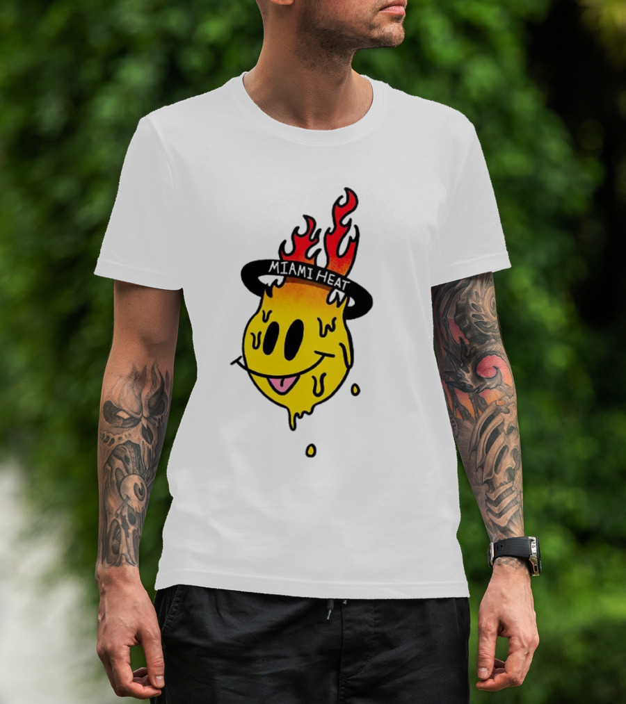 Miami Heat Flaming Melting Smiley Basketball T-Shirt