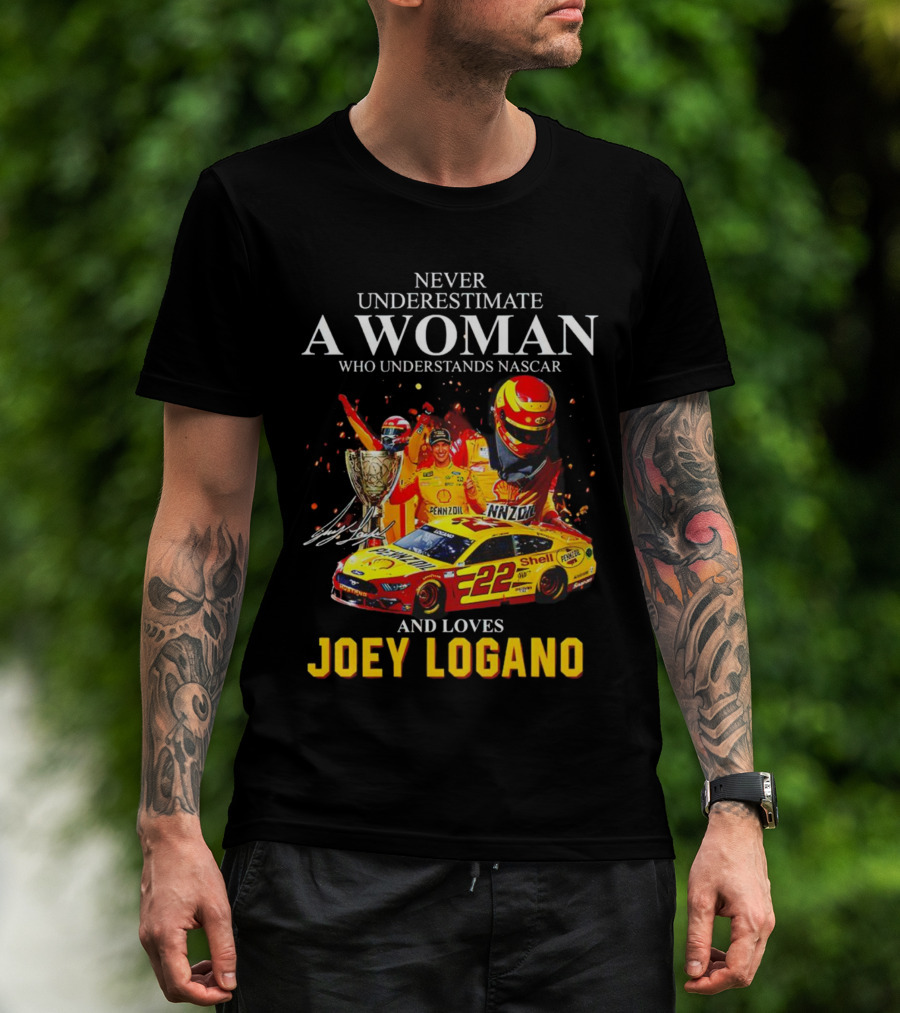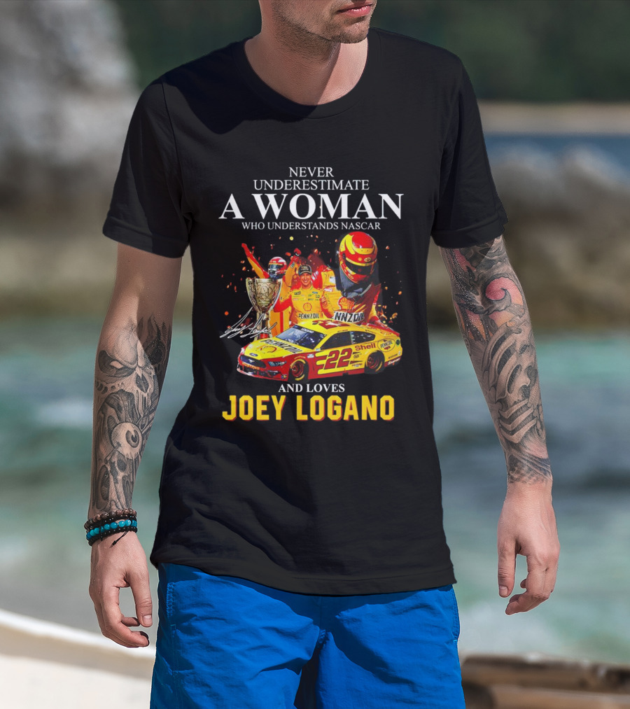 Never Underestimate A Woman Who Understands Nascar And Loves Joey Logano 22 Pennzoil Shell Racing T-Shirt