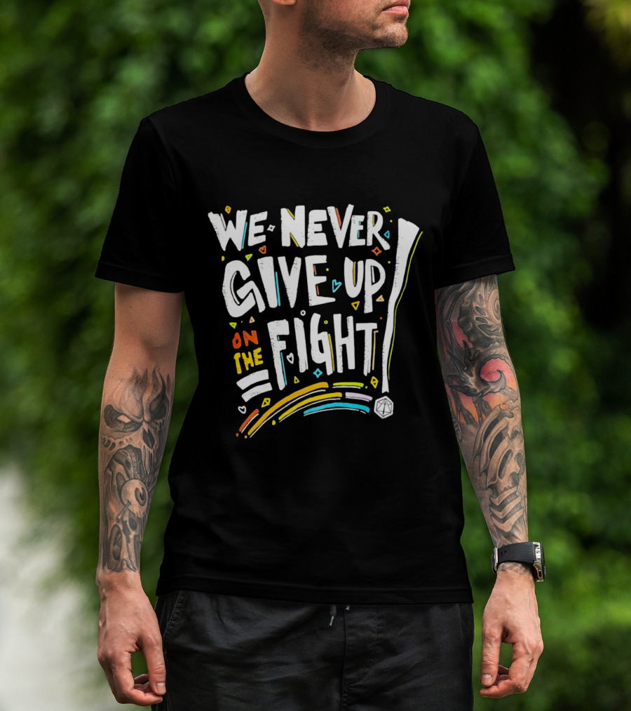 We Never Give Up On The Fight Colorful Inspirational Text With Hearts And Lines T-Shirt