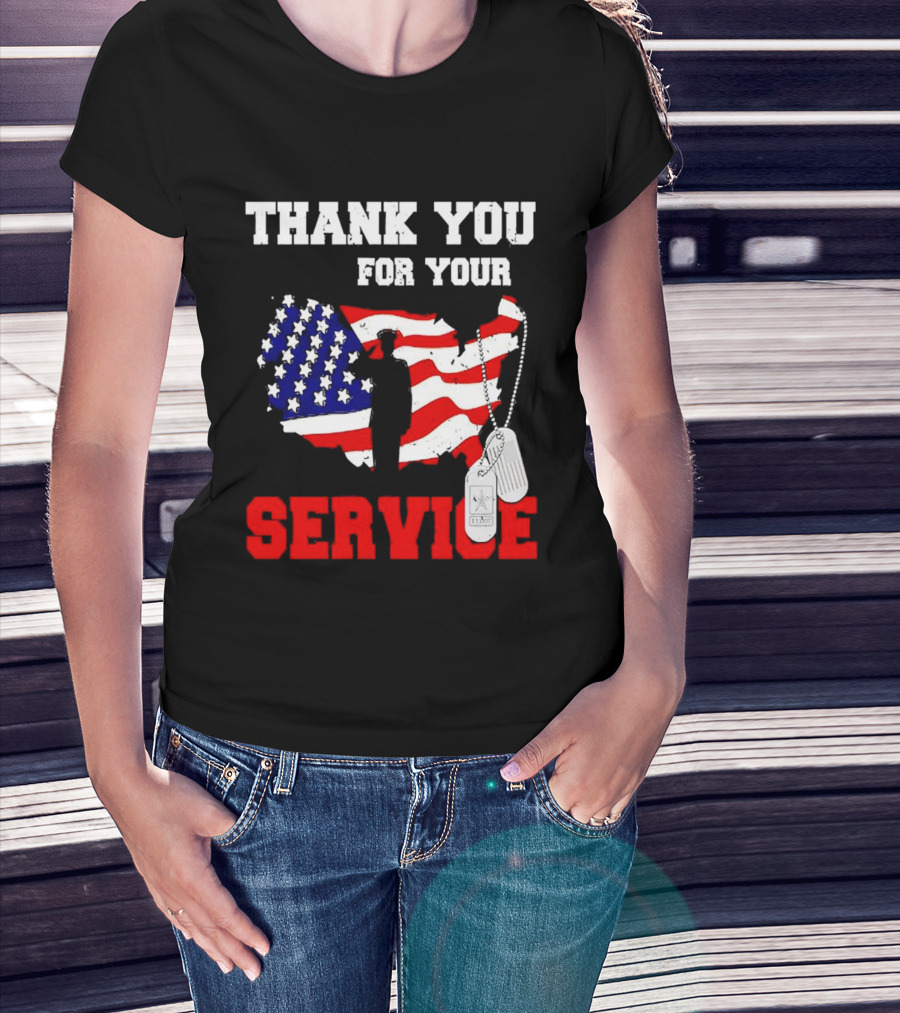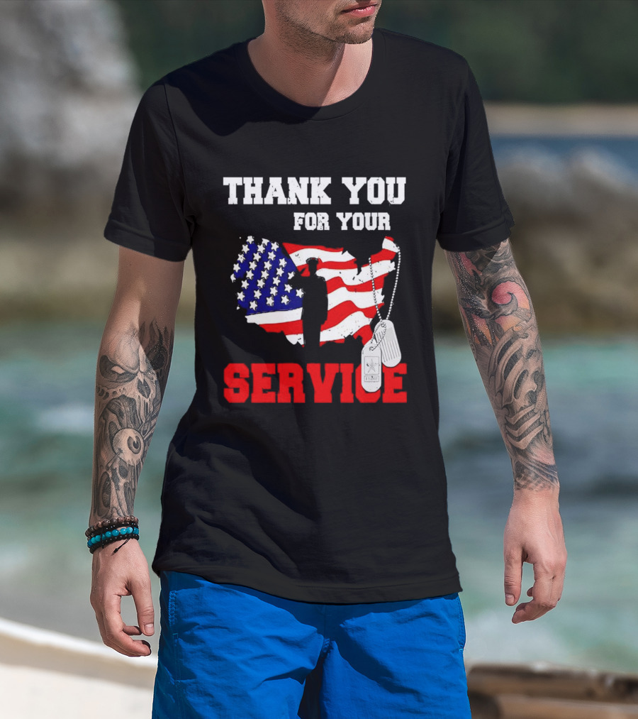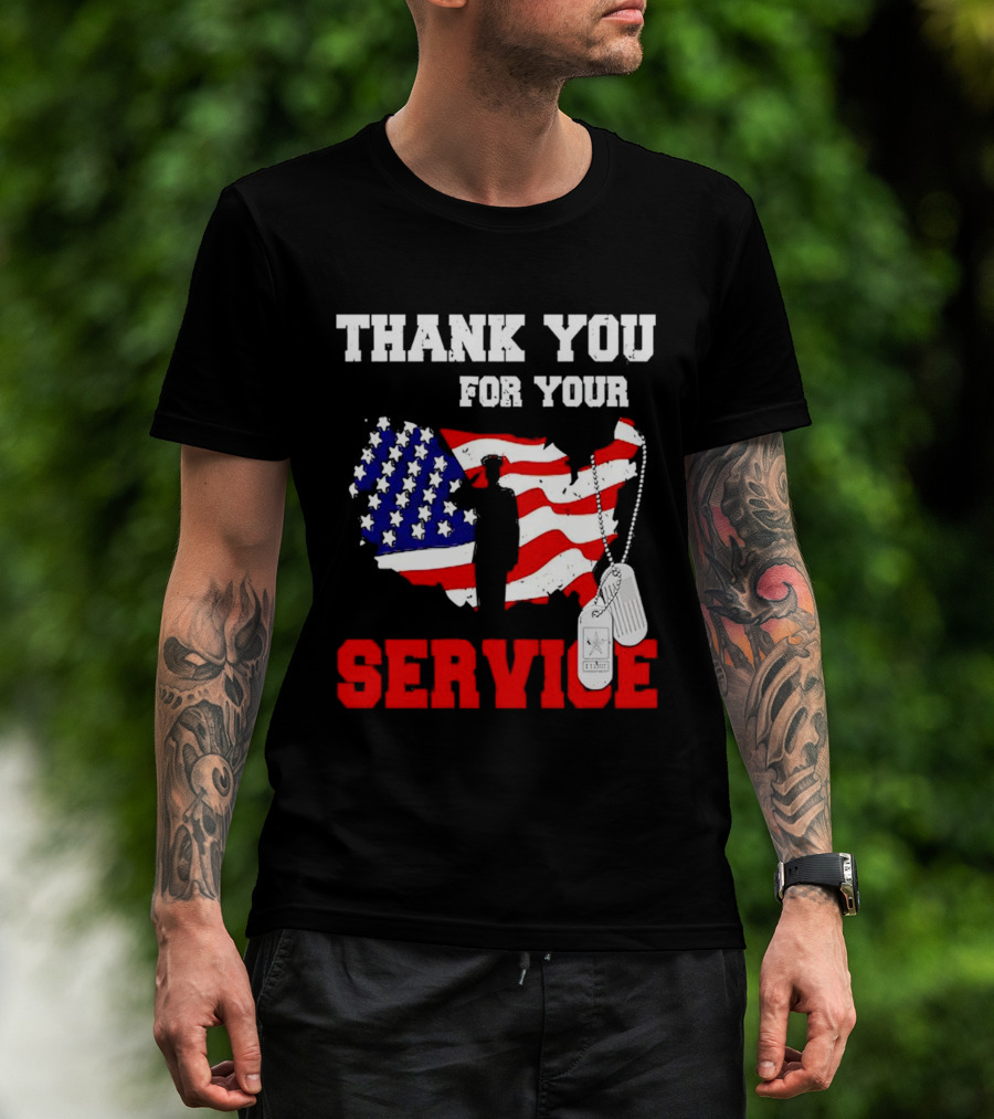 Thank You For Your Service American Flag Silhouette With Dog Tags T-Shirt