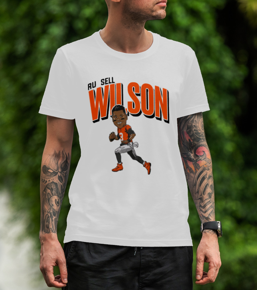 The RU SELL WILSON Football Caricature T-shirt is designed for everyday wear and a consistent fit. Fabric is pre-shrunk ring-spun cotton with durable stitching. See the size chart below for exact measurements.