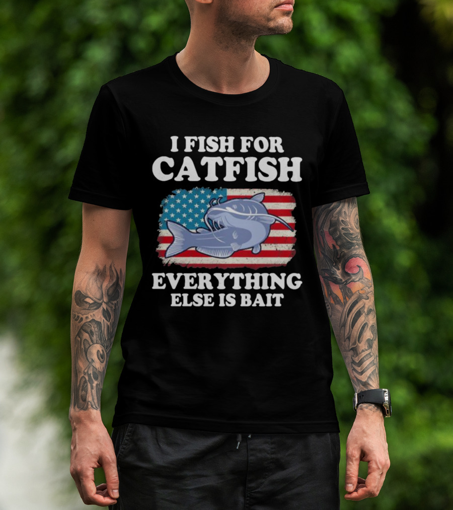 I Fish For Catfish Everything Else Is Bait American Flag Catfish T-Shirt