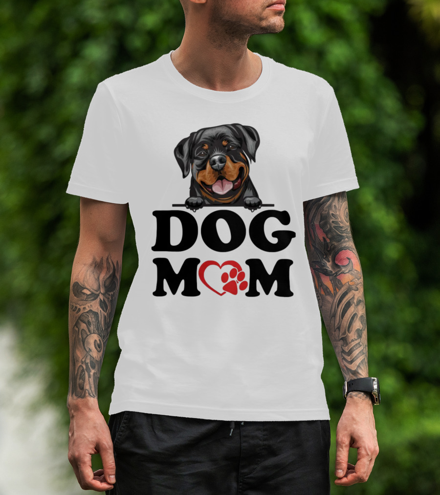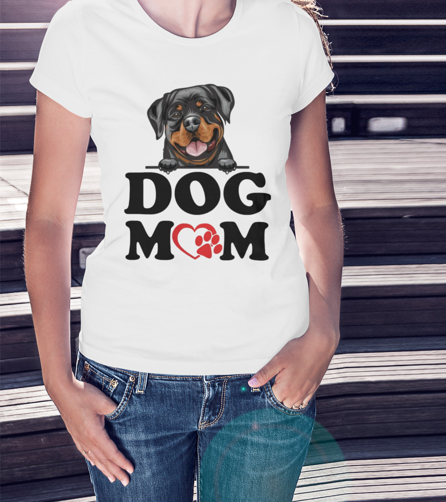 Rottweiler Dog Mom Heart Paw Design For Rottweiler Stickers Enthusiasts T-Shirt
