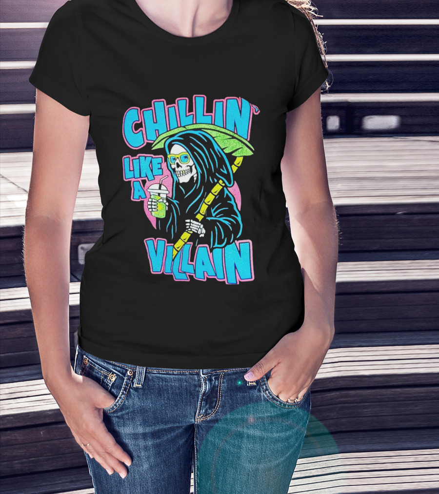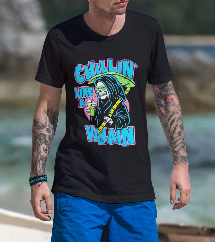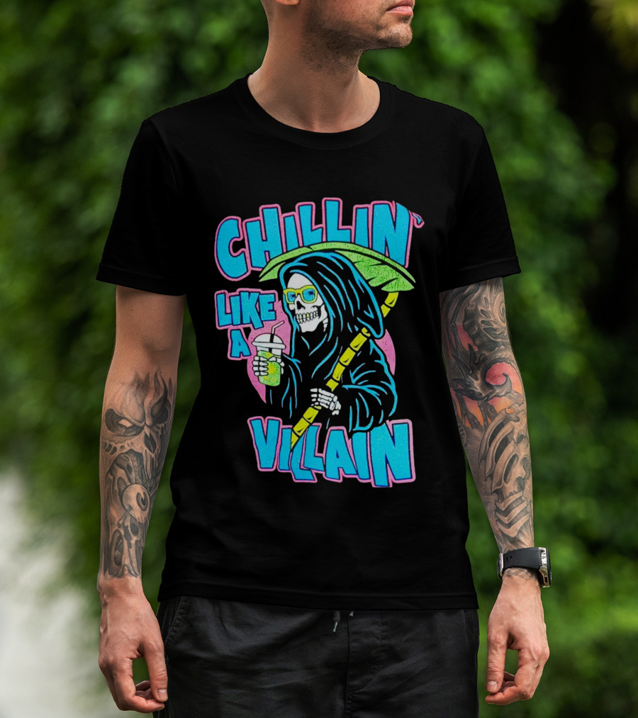 Chillin' Like A Villain Skeleton With Umbrella And Drink T-Shirt