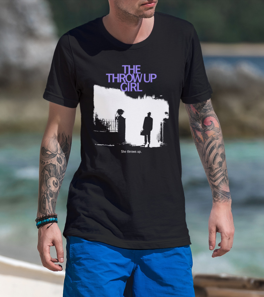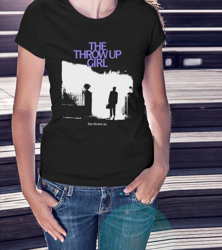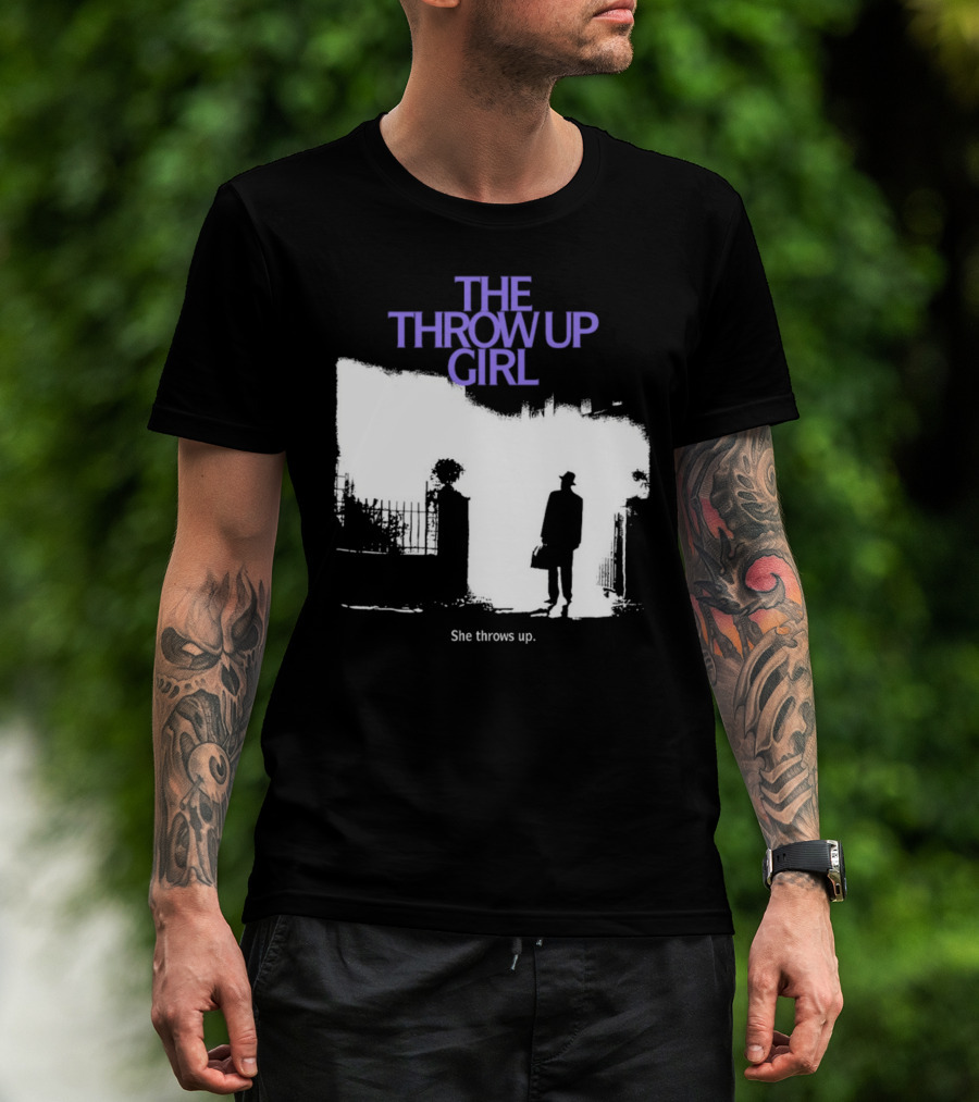 The The Throw Up Girl She Throws Up Silhouette Against Gate Background T-shirt is designed for everyday wear and a consistent fit. Fabric is pre-shrunk ring-spun cotton with durable stitching. See the size chart below for exact measurements.