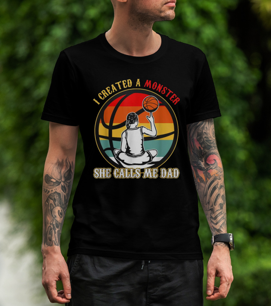 I Created A Monster She Calls Me Dad Retro Basketball T-Shirt