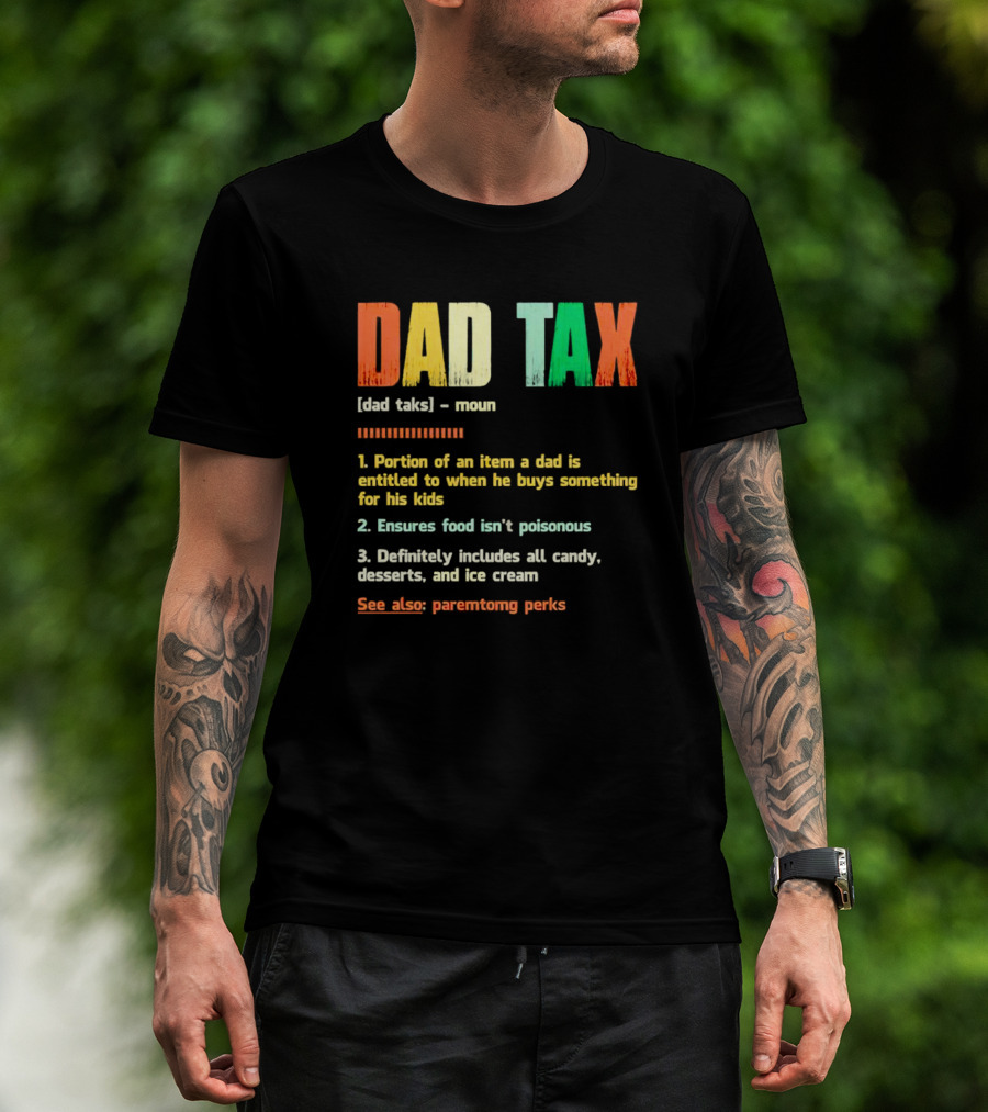 Dad Tax Definition Portion Of An Item A Dad Is Entitled To When He Buys Something For His Kids Ice Cream Candy Desserts Parenting Perks T-Shirt