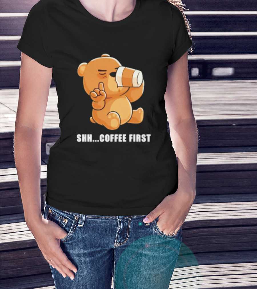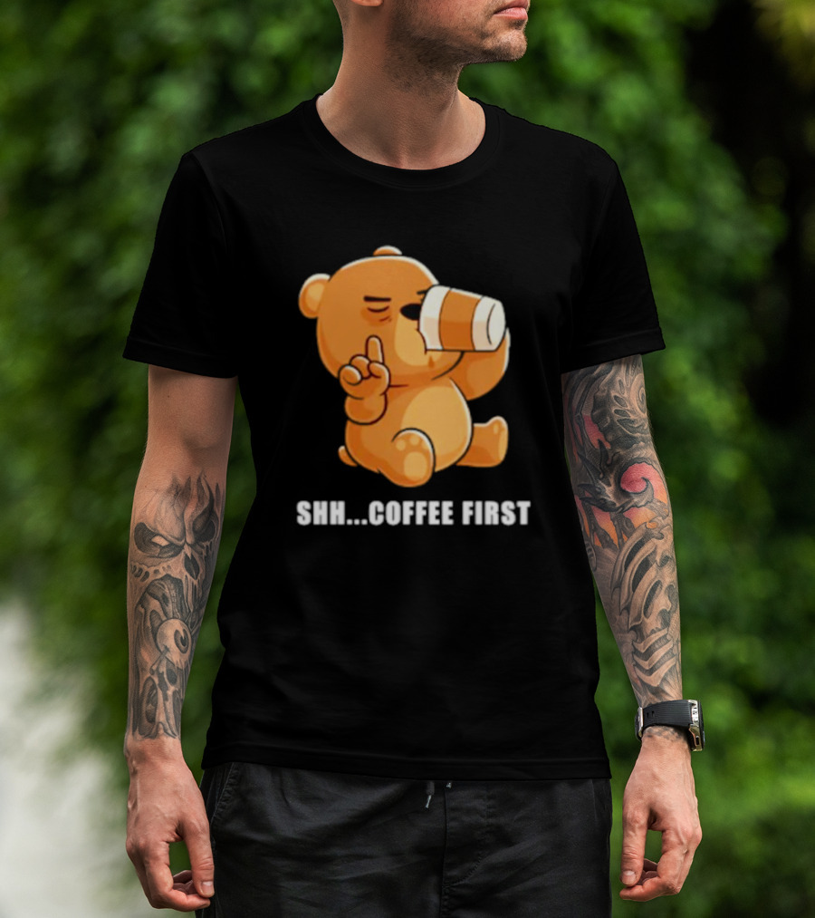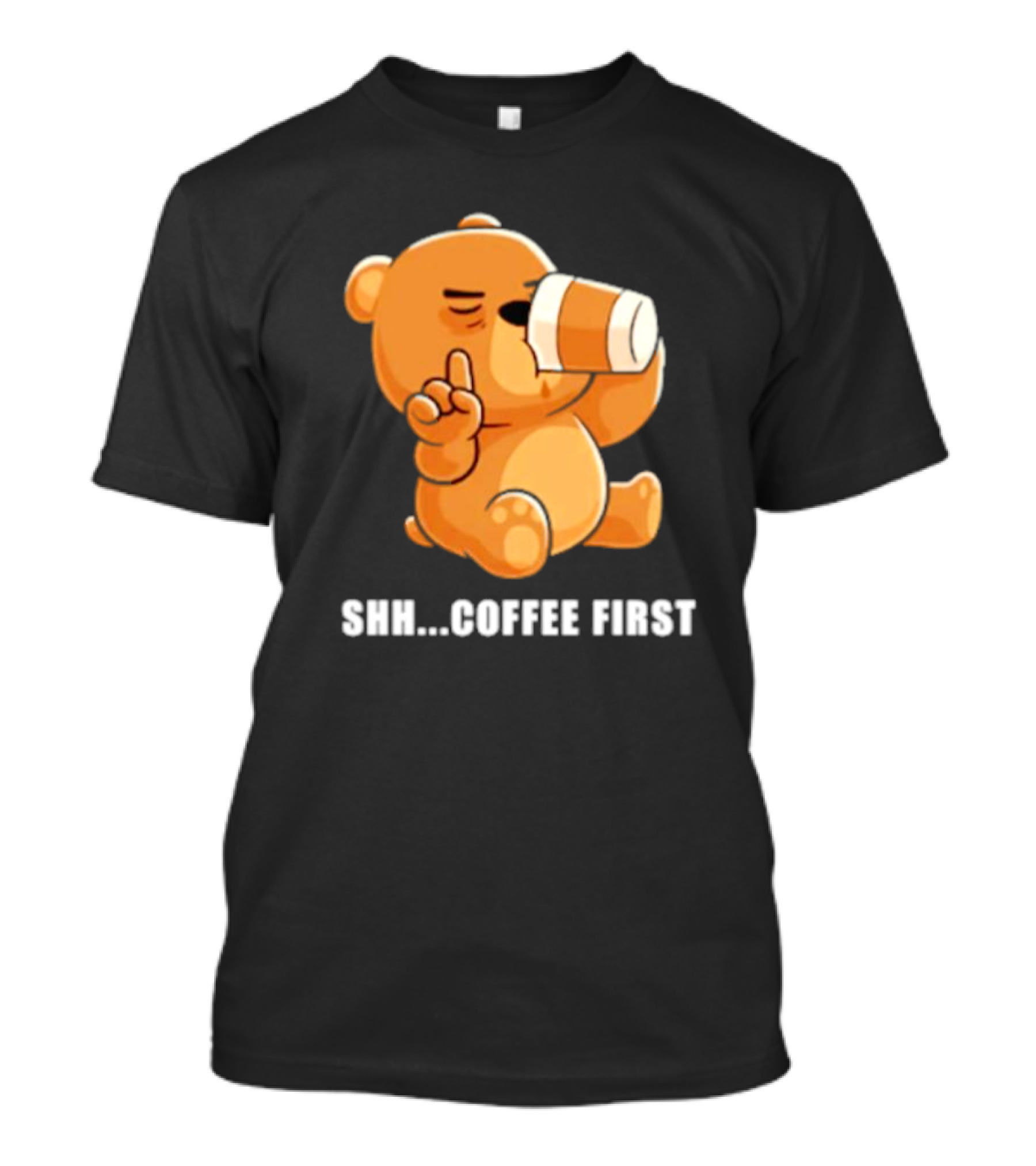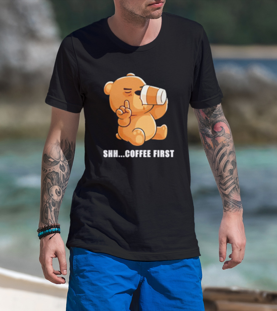 Shh Coffee First Bear Drinking Coffee T-Shirt