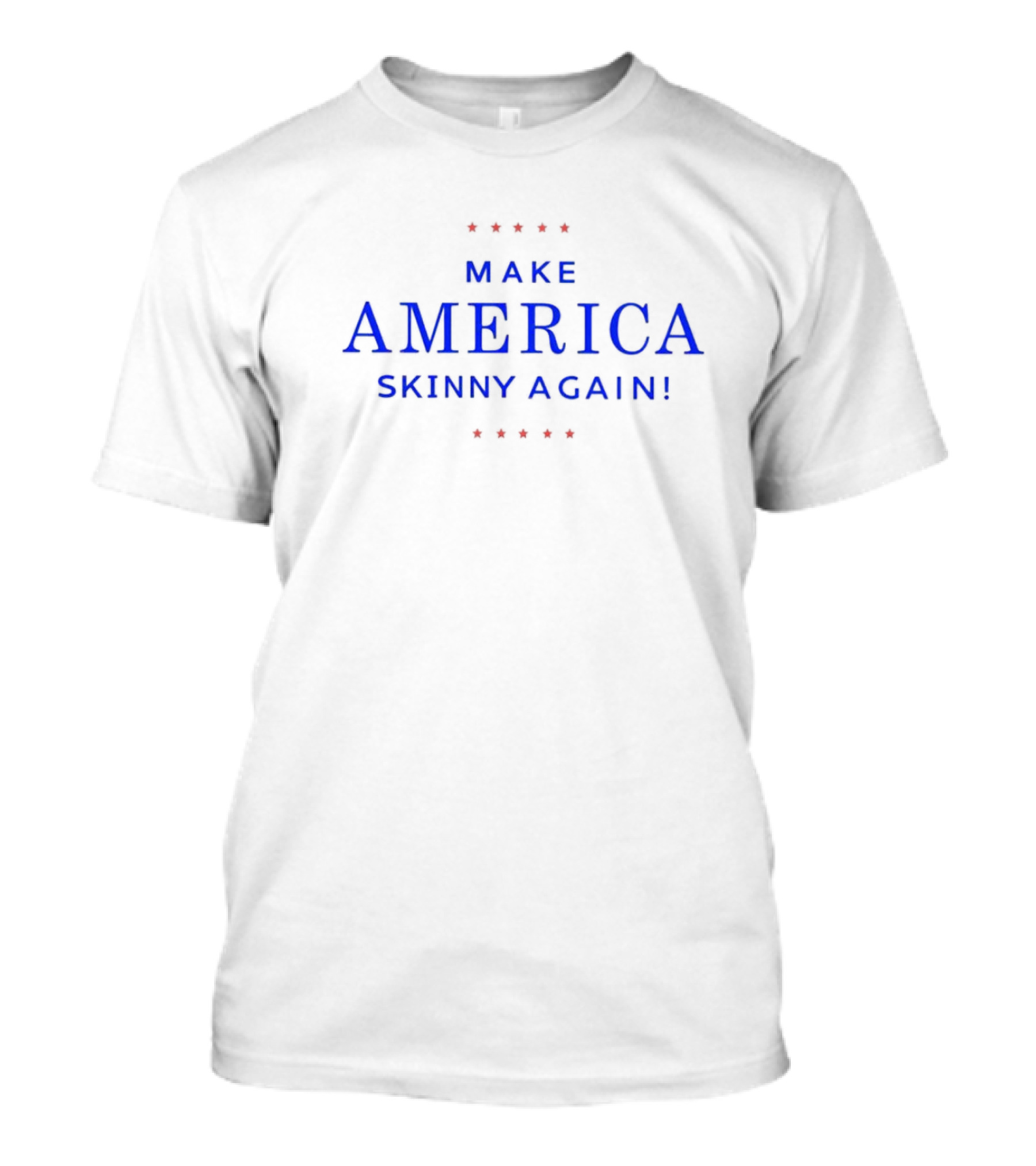 The Make America Skinny Again Political T-shirt is designed for everyday wear and a consistent fit. Fabric is pre-shrunk ring-spun cotton with durable stitching. See the size chart below for exact measurements.
