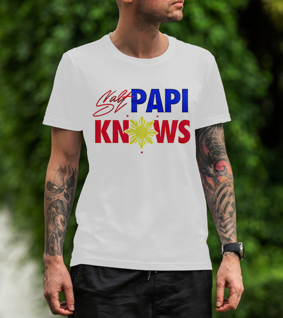 The Salt Papi Knows Filipino Sun T-shirt is designed for everyday wear and a consistent fit. Fabric is pre-shrunk ring-spun cotton with durable stitching. See the size chart below for exact measurements.