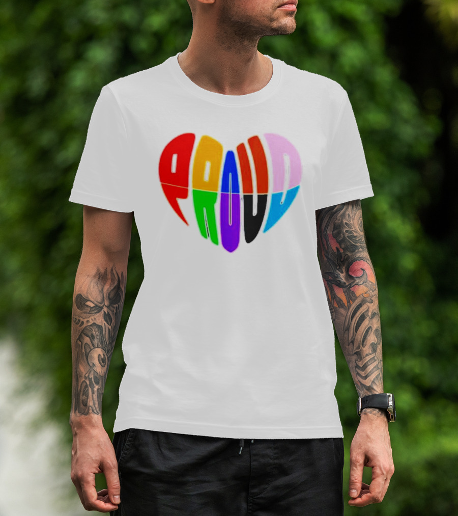 The Proud Progress Heart Rainbow Colors T-shirt is designed for everyday wear and a consistent fit. Fabric is pre-shrunk ring-spun cotton with durable stitching. See the size chart below for exact measurements.