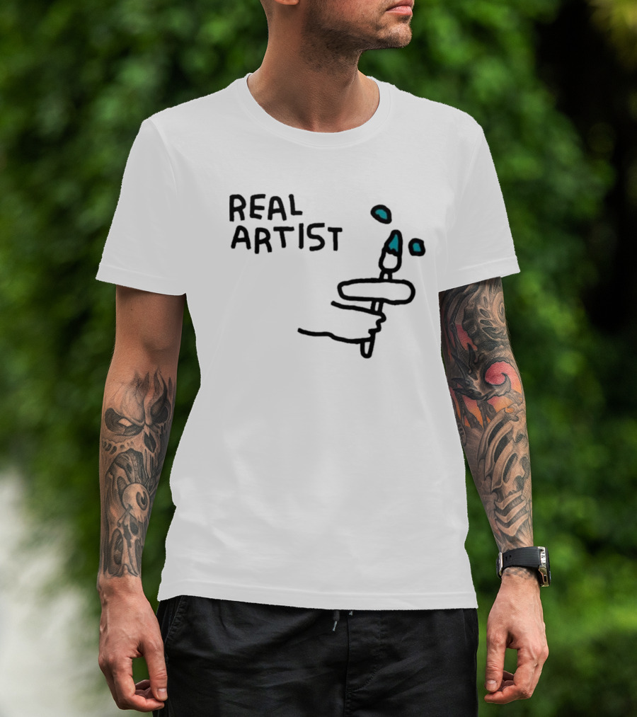 REAL ARTIST Paint Brush Hand Drawing Blue Paint Drops T-Shirt
