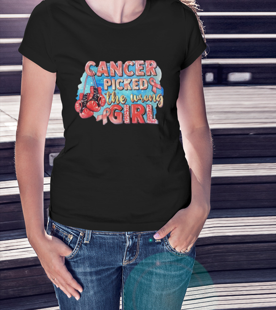 Cancer Picked The Wrong Girl Pink Ribbon Boxing Gloves T-Shirt