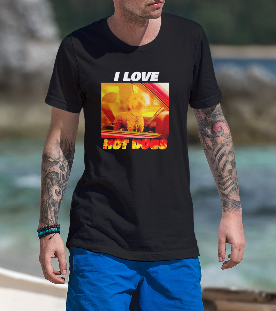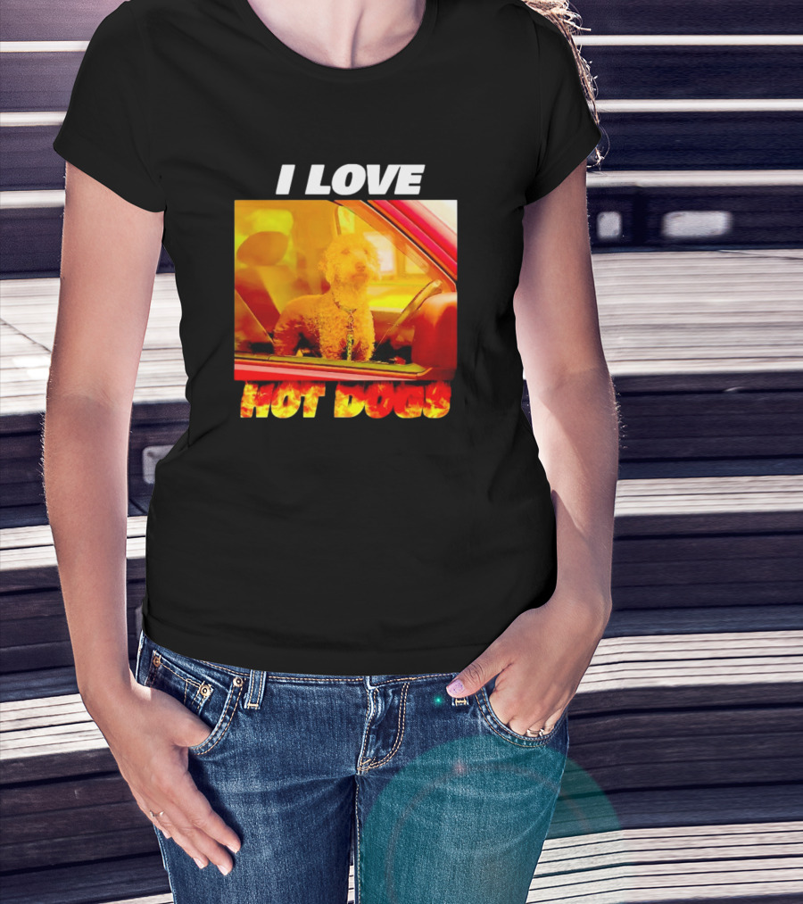 I Love Hot Dogs Dog In Car T-Shirt