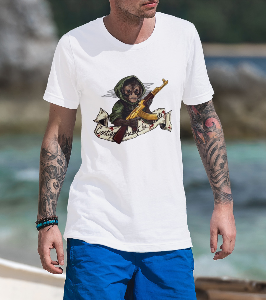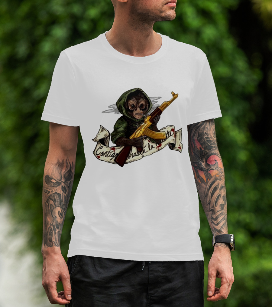 El Changuito Contigo Hasta La Muerte Monkey With AK-47 T-Shirt