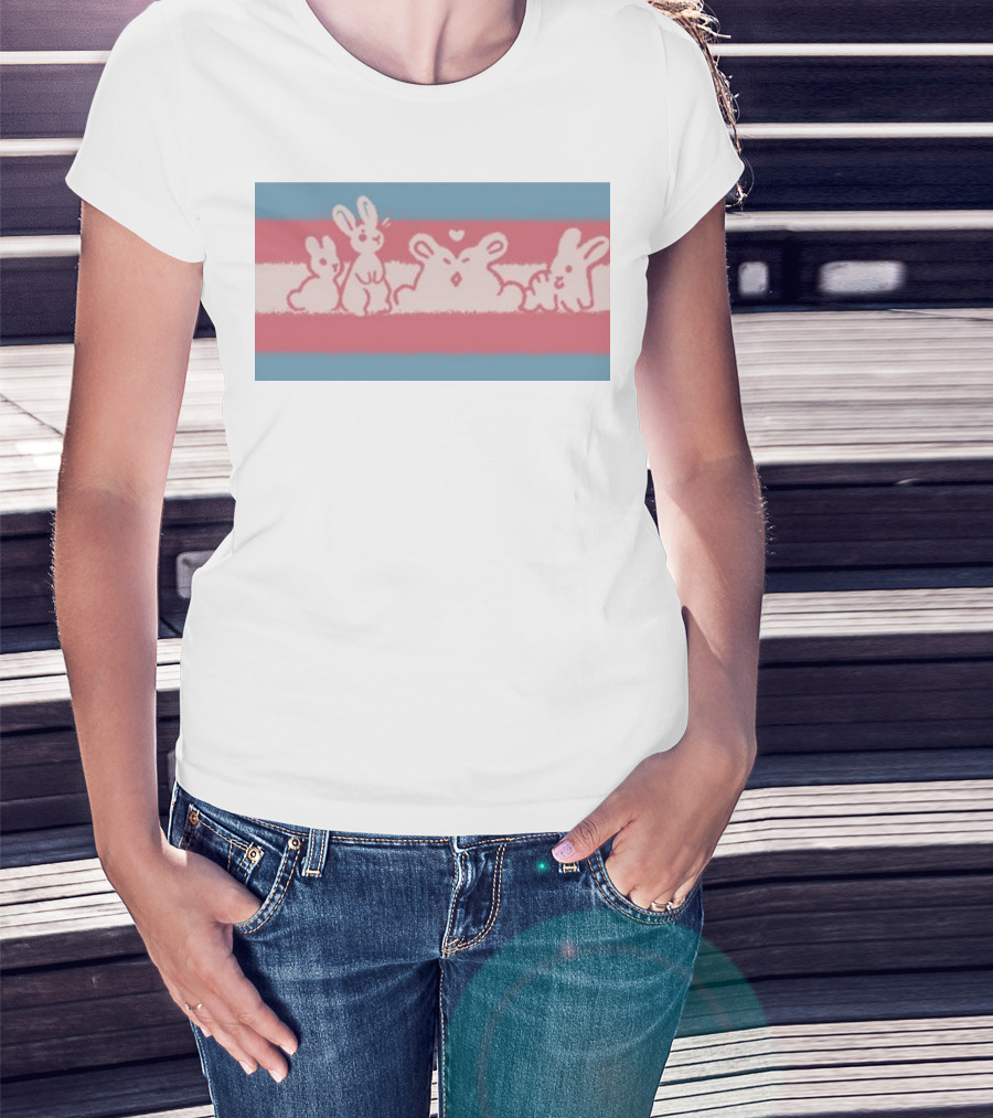 Starsleeps Trans Pride Rabbits On Transgender Flag Background T-Shirt