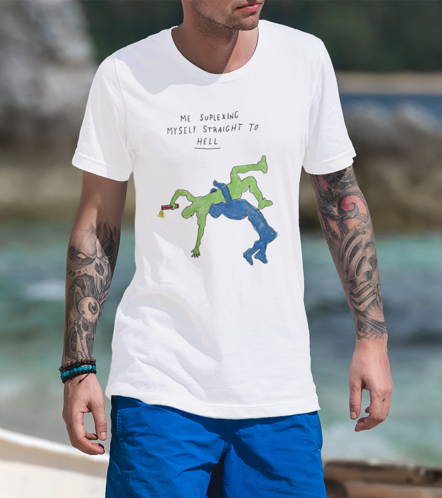 Me Suplexing Myself Straight To Hell With Green And Blue Wrestler Figures T-Shirt