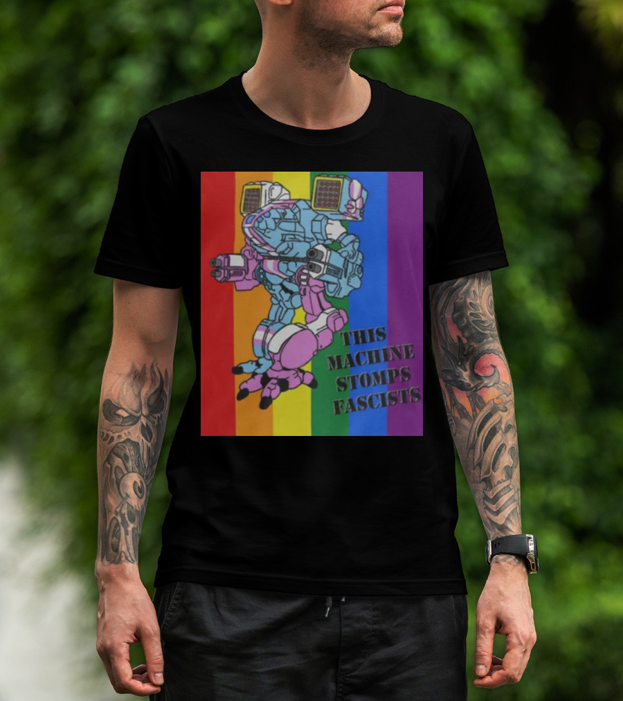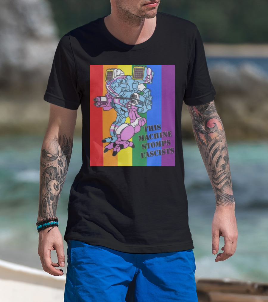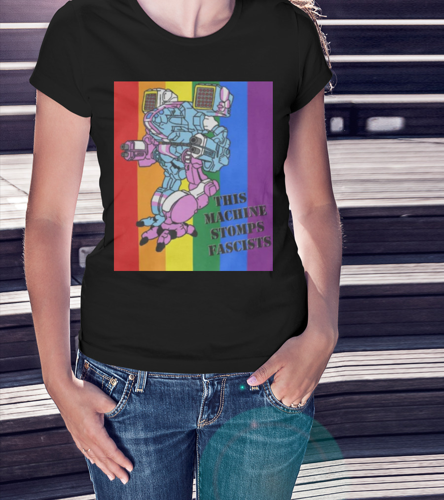 This Machine Stomps Fascists Mech Rainbow Stripes T-Shirt