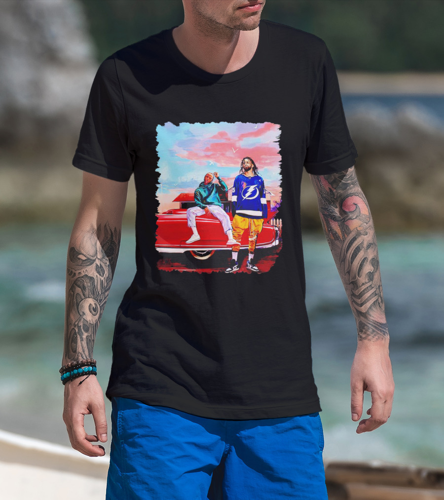 J Cole And Kendrick Lamar Concert With Retro Car And Tampa Bay Lightning Jersey T-Shirt