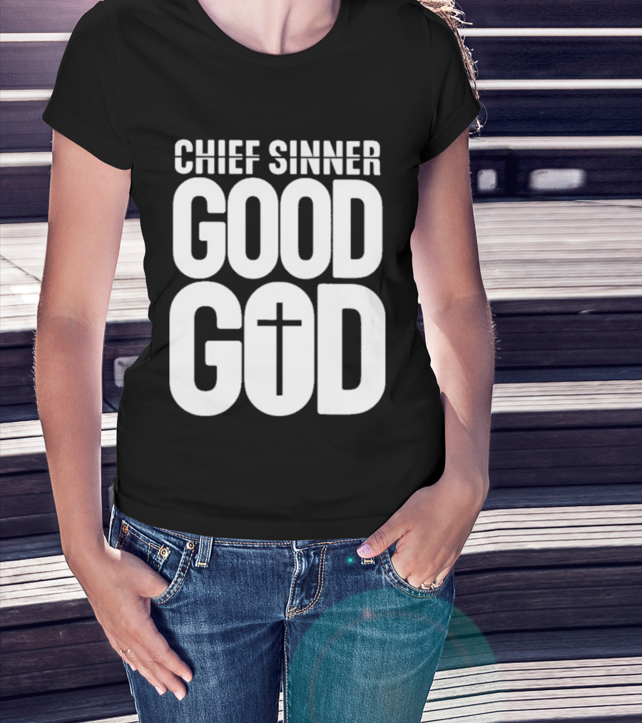 The Chief Sinner Good God Cross T-shirt is designed for everyday wear and a consistent fit. Fabric is pre-shrunk ring-spun cotton with durable stitching. See the size chart below for exact measurements.