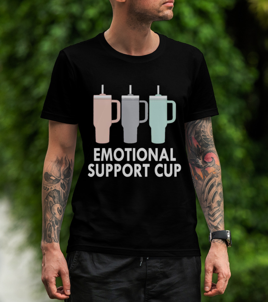 The Emotional Support Cup Three Tumbler T-shirt is designed for everyday wear and a consistent fit. Fabric is pre-shrunk ring-spun cotton with durable stitching. See the size chart below for exact measurements.