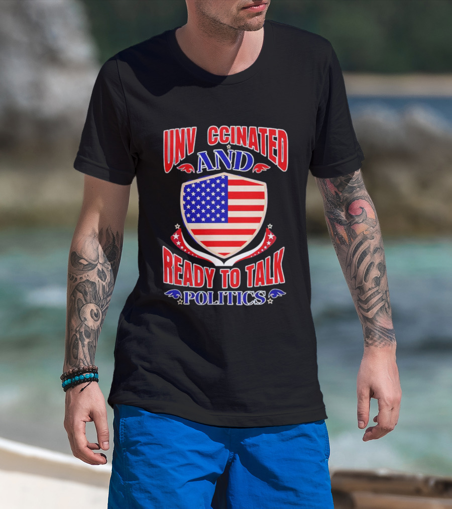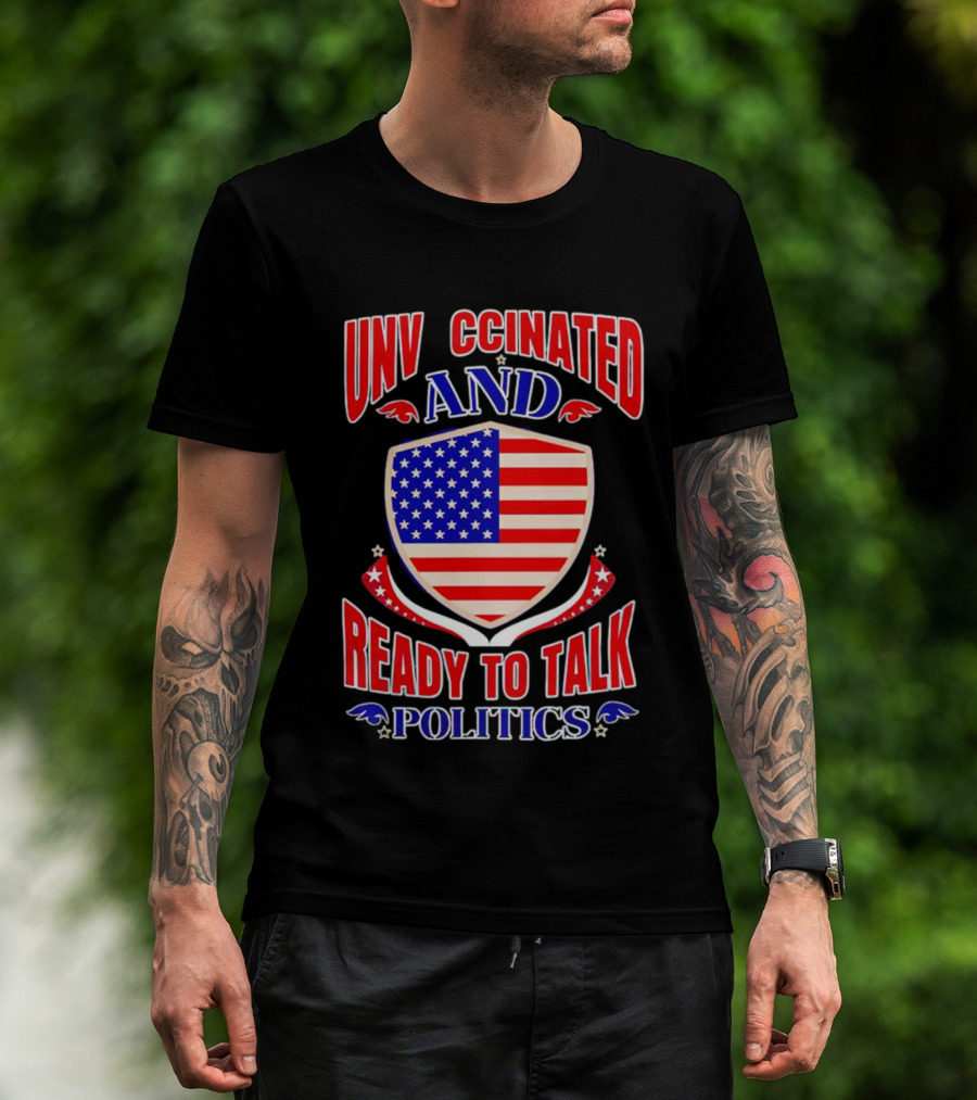 UNV CCINATED AND READY TO TALK POLITICS American Shield T-Shirt