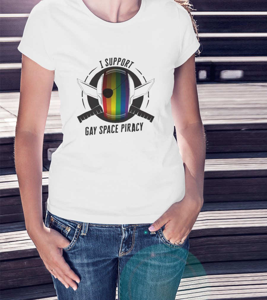 I Support Gay Space Piracy Pride Rainbow Flag Patch T-Shirt