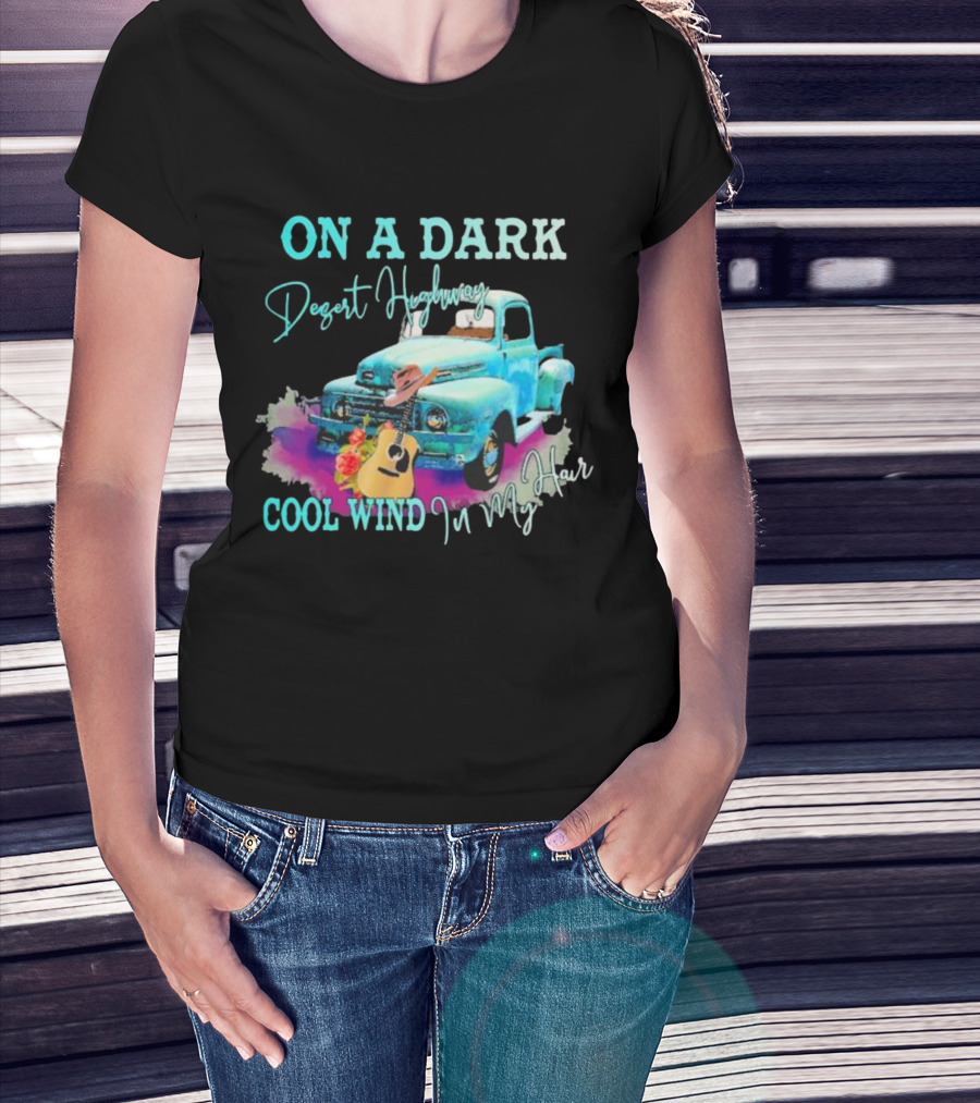 ON A DARK Desert Highway Cool Wind In My Hair Vintage Truck And Guitar T-Shirt
