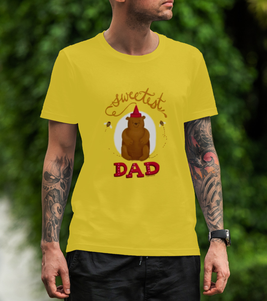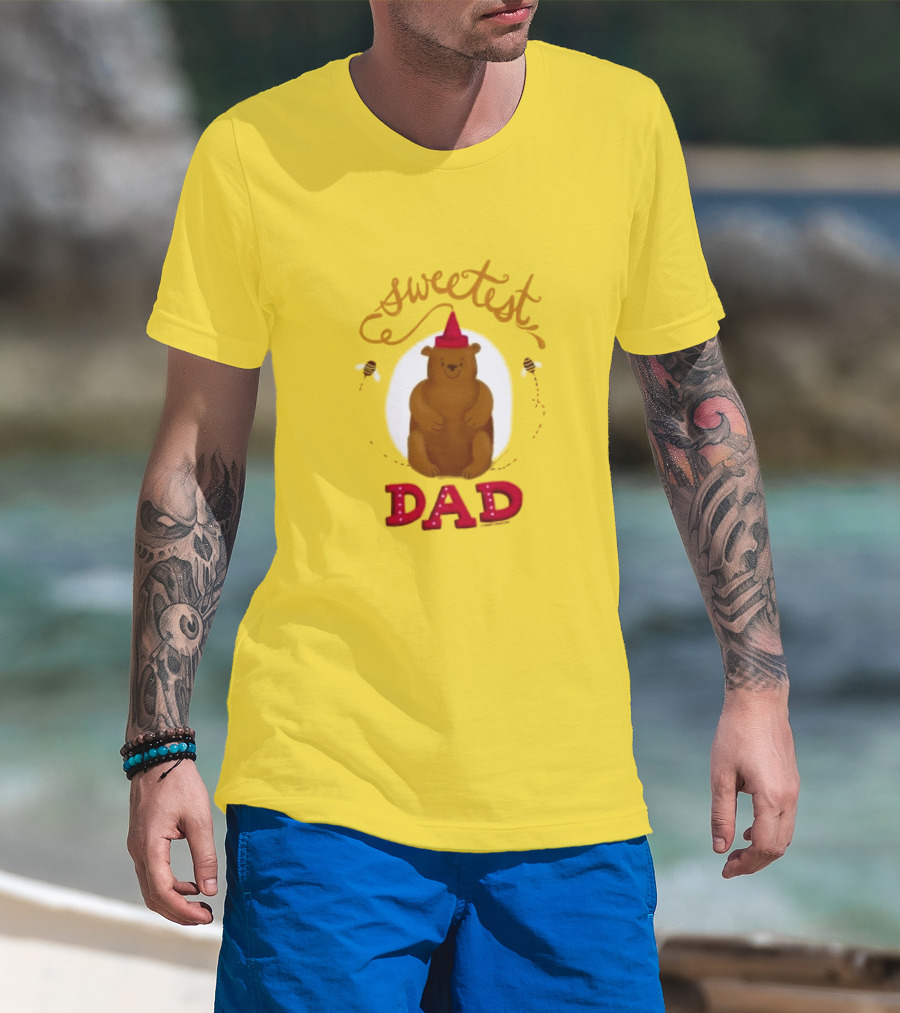 The Sweetest Dad Bear Fathers Day T-shirt is designed for everyday wear and a consistent fit. Fabric is pre-shrunk ring-spun cotton with durable stitching. See the size chart below for exact measurements.