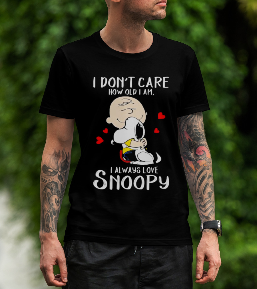 I Don’t Care How Old I Am I Always Love Snoopy Hug With Hearts T-Shirt
