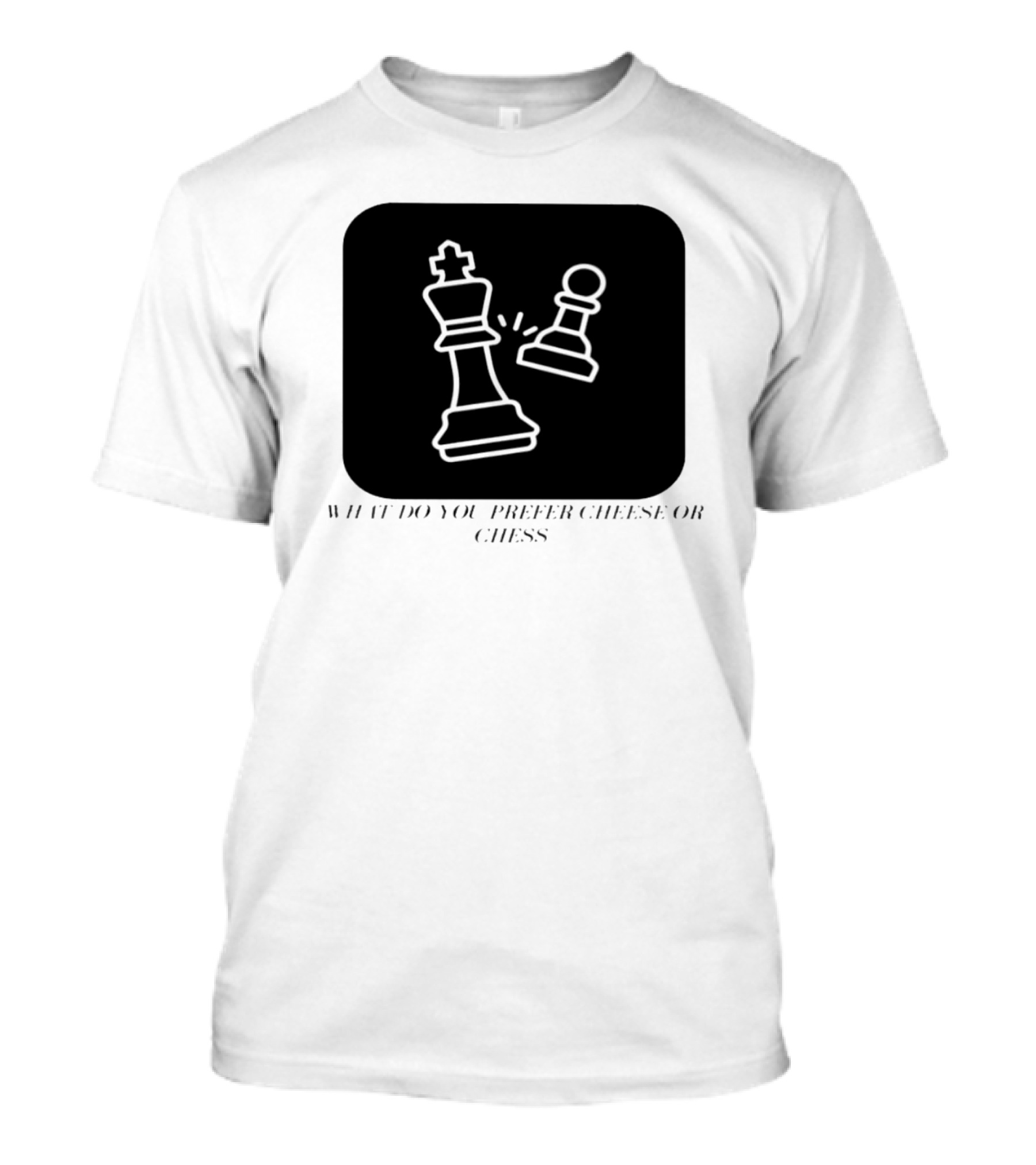 The What Do You Prefer Cheese or Chess King and Pawn Battle T-shirt is designed for everyday wear and a consistent fit. Fabric is pre-shrunk ring-spun cotton with durable stitching. See the size chart below for exact measurements.