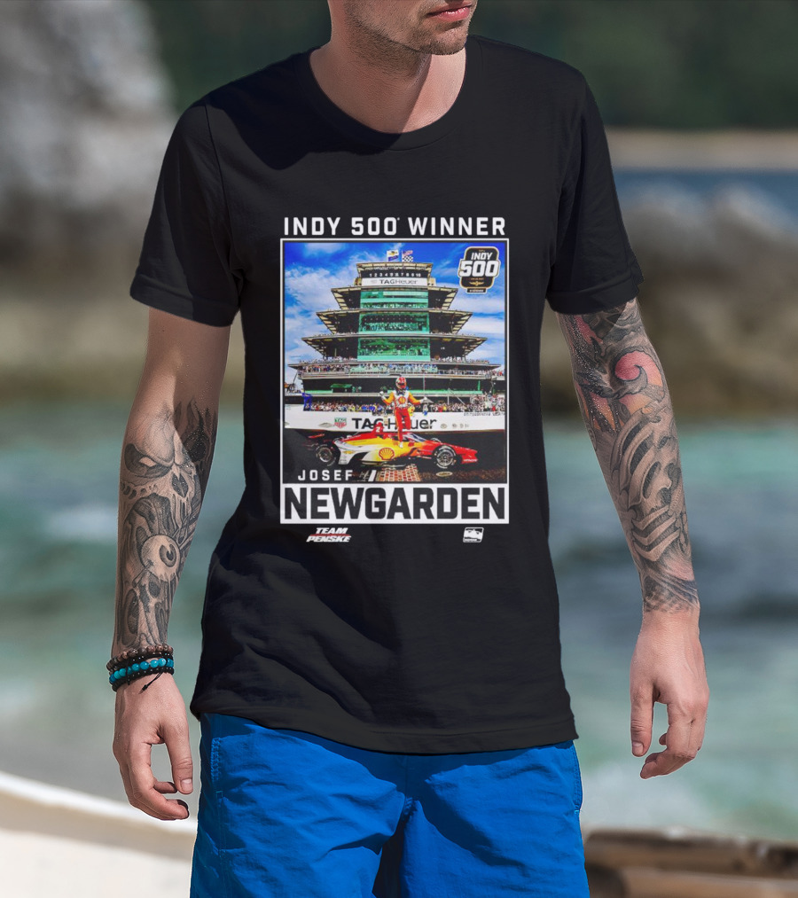 Indy 500 Winner Josef Newgarden Team Penske TAG Heuer Race Car And Pagoda Background T-Shirt