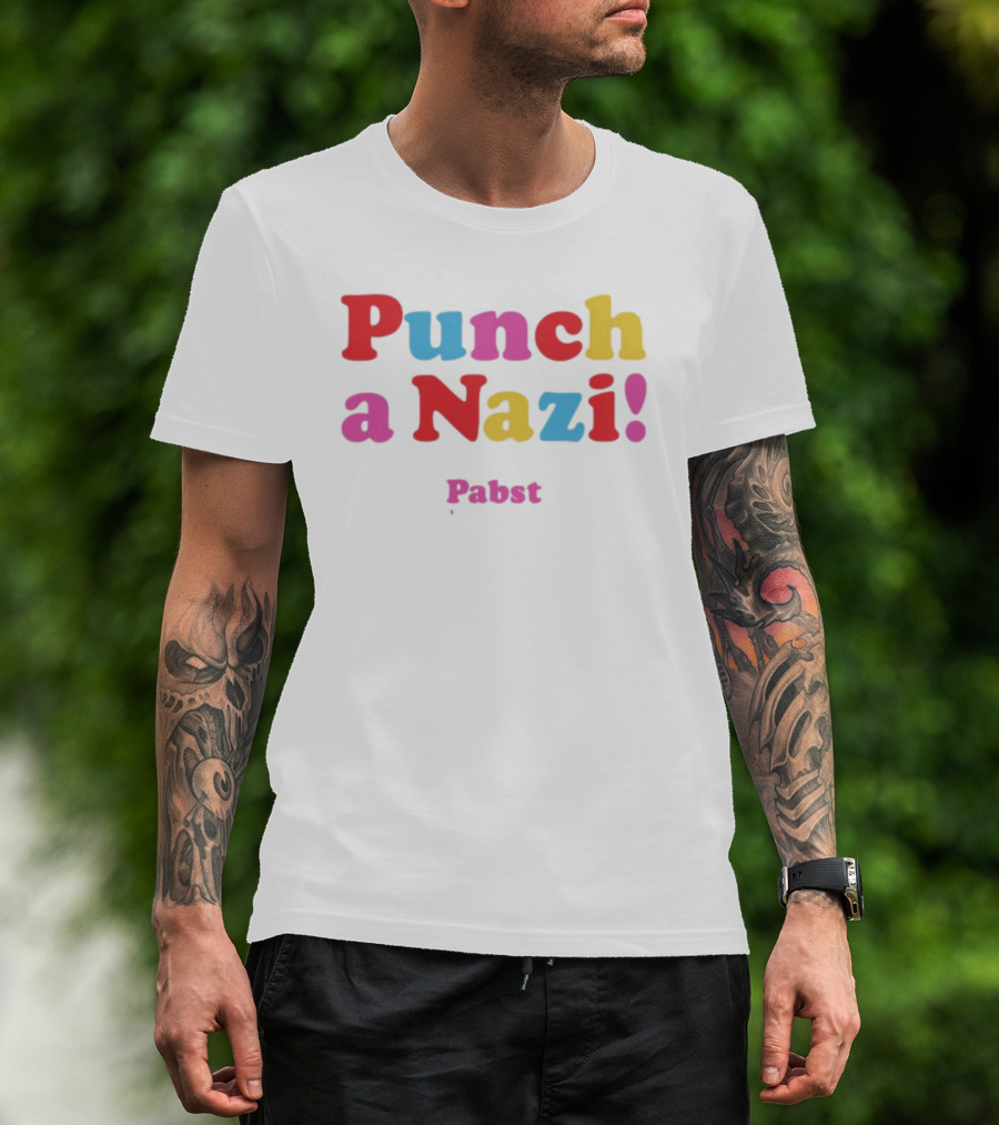 The Punch a Nazi Pabst T-shirt is designed for everyday wear and a consistent fit. Fabric is pre-shrunk ring-spun cotton with durable stitching. See the size chart below for exact measurements.