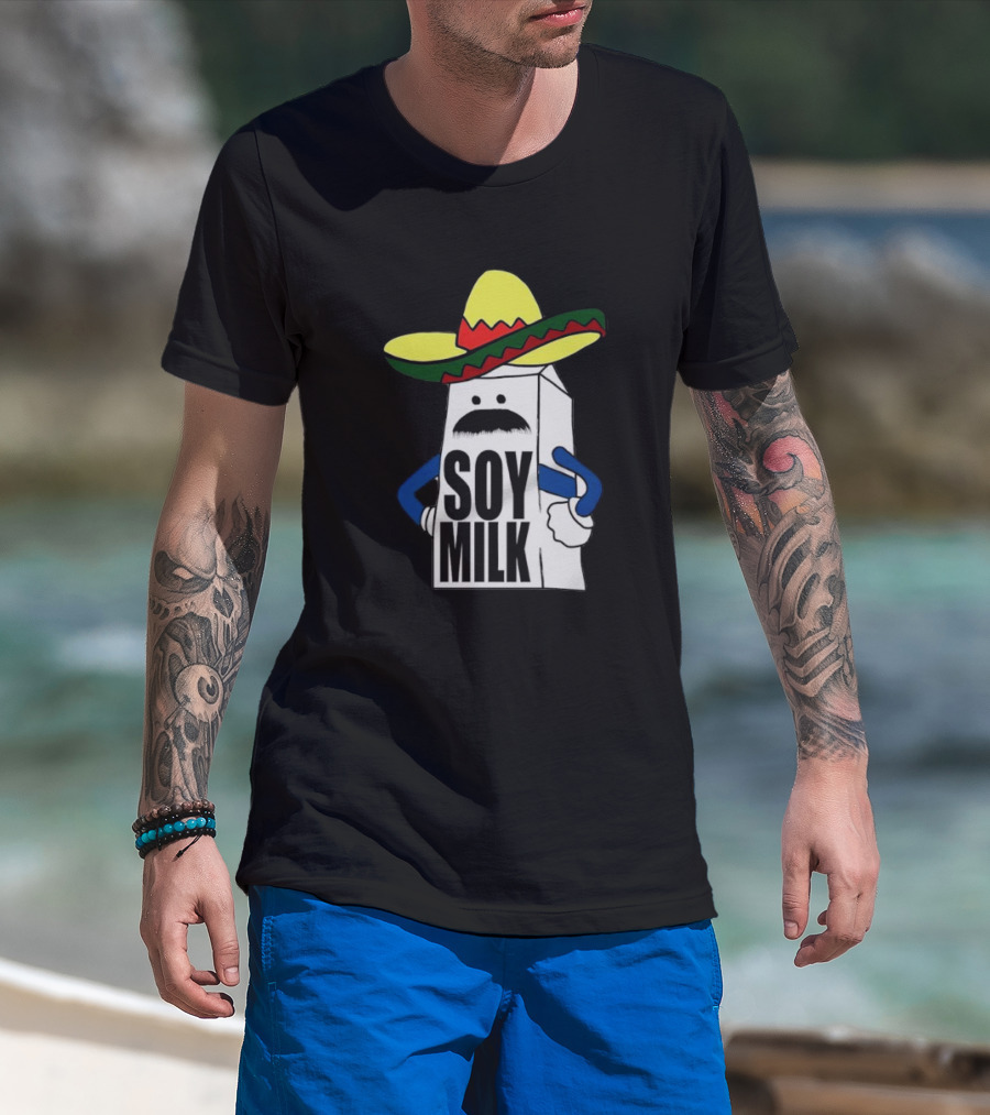 Soy Milk Cartoon With Sombrero And Mustache T-Shirt