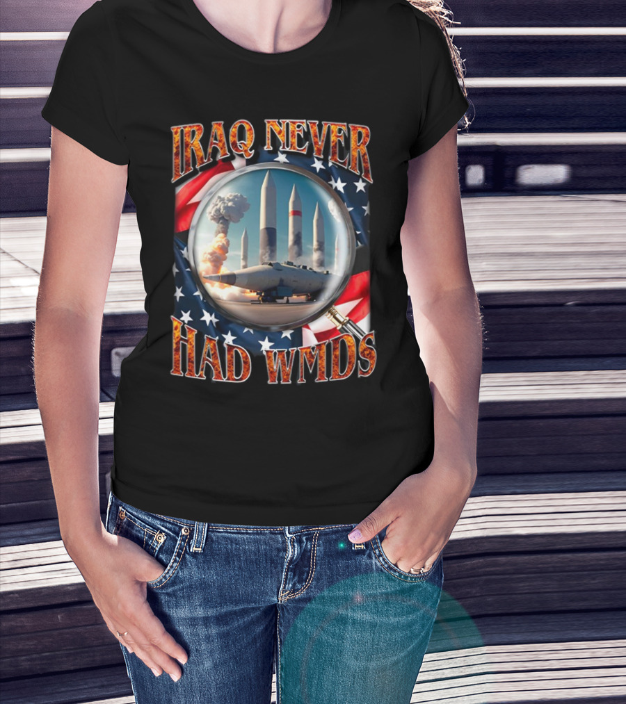 Iraq Never Had WMDs Shithead Steve American Flag Magnifying Glass Missiles T-Shirt