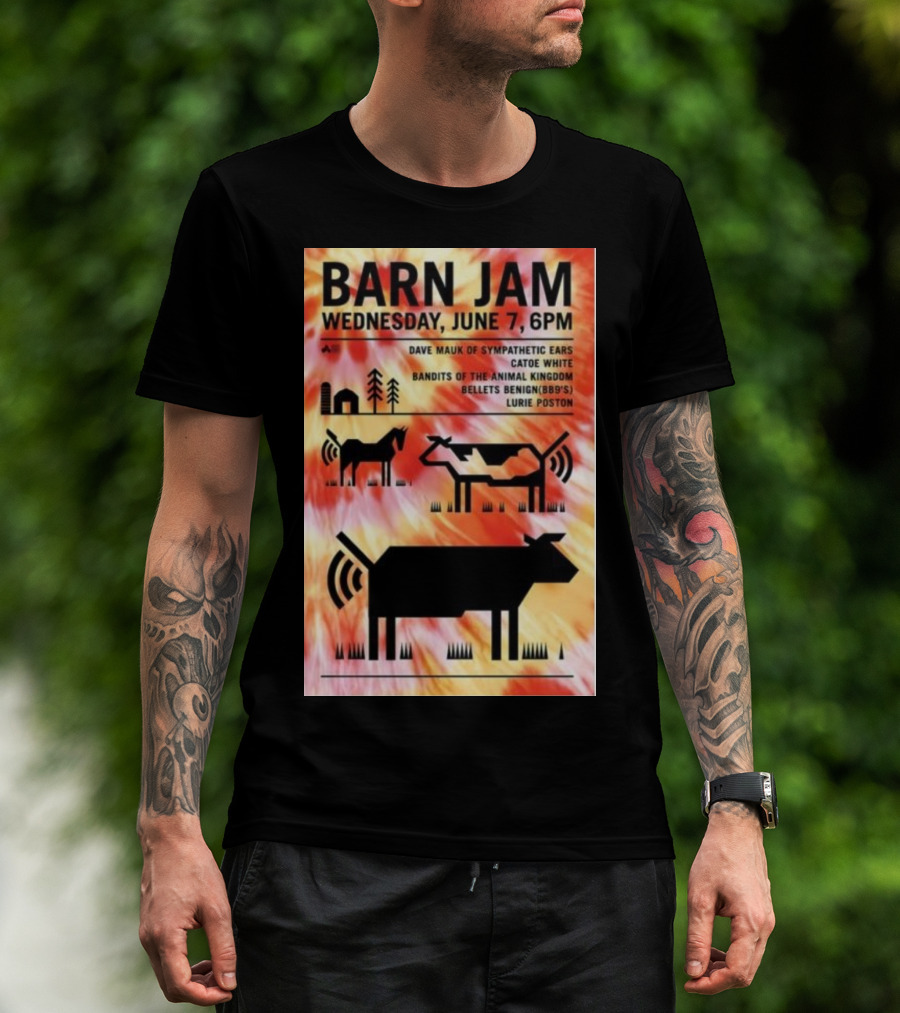 Barn Jam Wednesday June 7 6PM Dave Mauk Sympathetic Ears Catie Catie White Bandits Of The Animal Kingdom Bellets Benign BBQs Lurie Poston T-Shirt