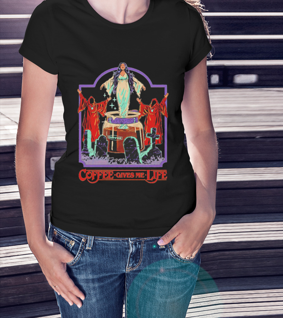 COFFEE GIVES ME LIFE Enchantress And Ritual Scene With Tombstones T-Shirt