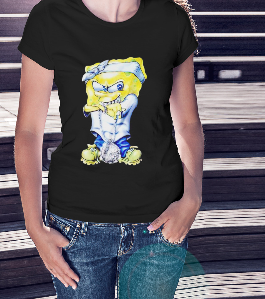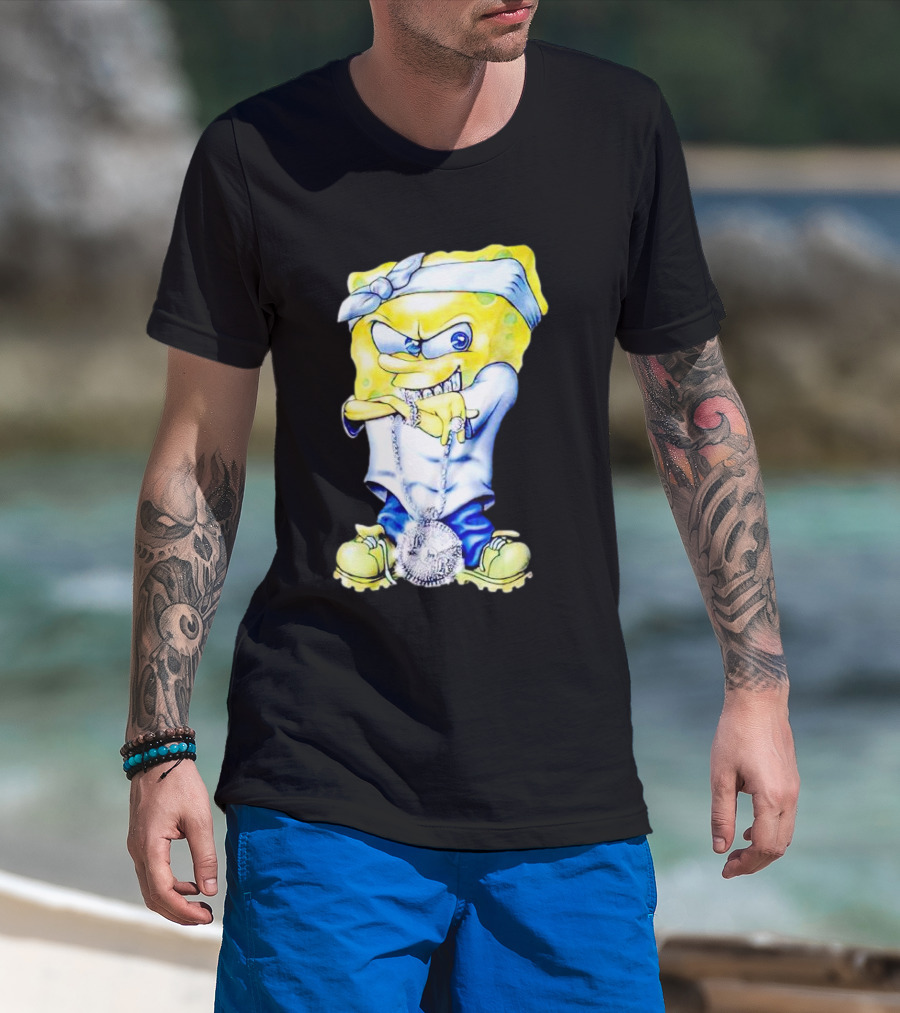 Thug Spongebob Squarepants With Bandana And Bling Necklace T-Shirt